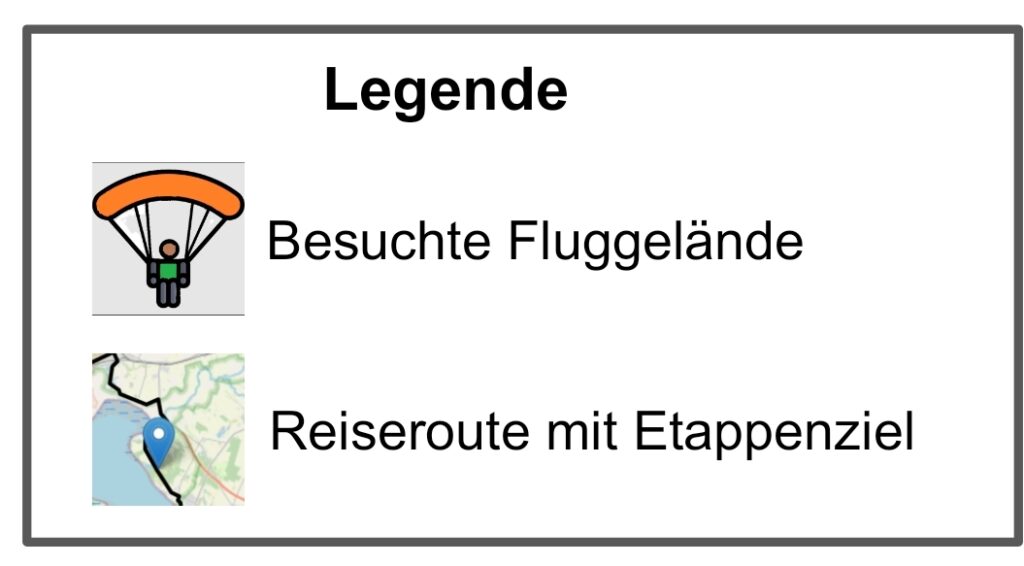 Diese einfache Kartendarstellung zeigt dir Fahrtroute, Übernachtungsplätze sowie Fluggebiete meiner Fahrrad- und Gleitschirmreise durch Dänemark. Ein Klick auf das Gleitschirmsymbol öffnet in einem separaten Tab den zum Fluggebiet gehörenden Blog-Eintrag.